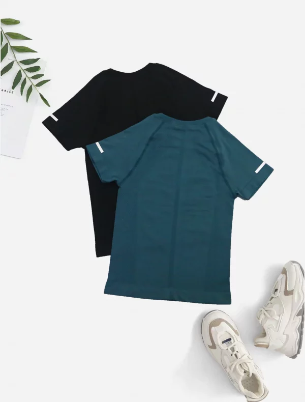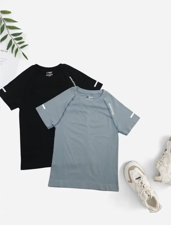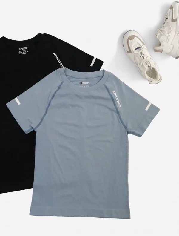 Bequemes 2-teiliges Fitness-Shirt mit kurzärmeligem Design, ideal für Yoga und Training. Nahtlos und elastisch für optimalen Komfort.