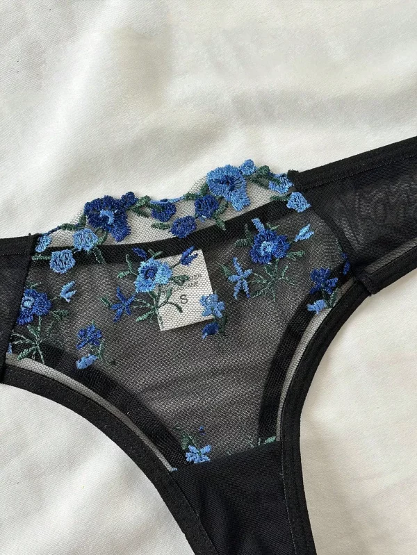 Verführerisches Dessous-Set aus bestickter Spitze, bestehend aus BH und Slip. Perfekt für sinnliche Momente.