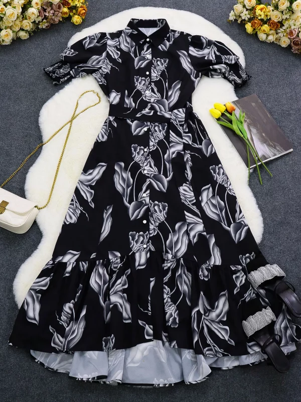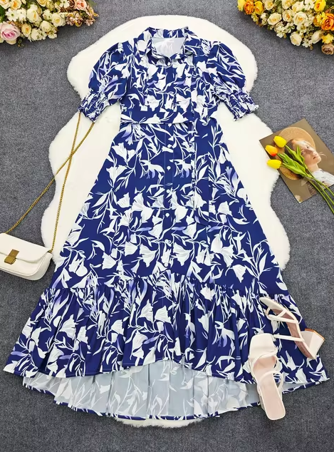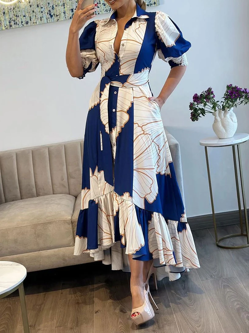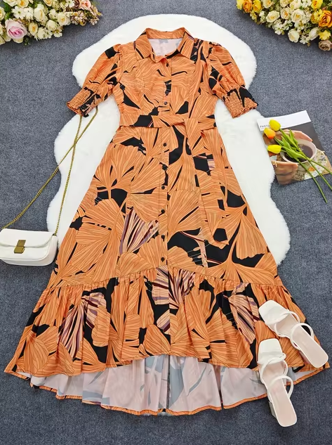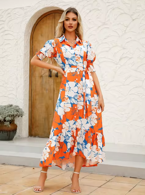 Dieses lässige Sommer-Maxikleid mit floralem Print und Umlegekragen ist perfekt für entspannte Tage am Strand oder bei sommerlichen Anlässen. Mit halblangen Ärmeln und lockerem Schnitt sorgt es für einen bequemen und stilvollen Look.