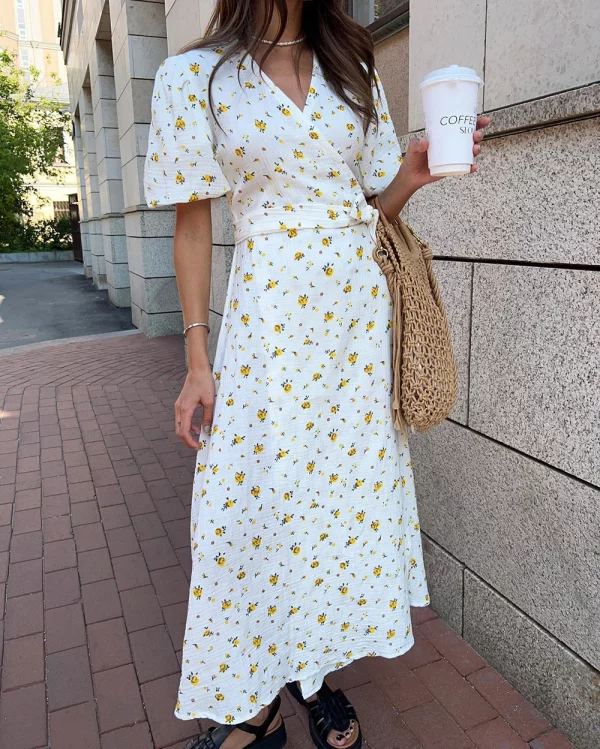 Dieses elegante Midi-Kleid aus 100 % Baumwolle begeistert mit floralem Print und seitlichen Schlitzen. Ideal für einen lässigen Sommerlook, bietet es sowohl Komfort als auch Stil. Perfekt für entspannte Tage und besondere Anlässe im Sommer 2024.