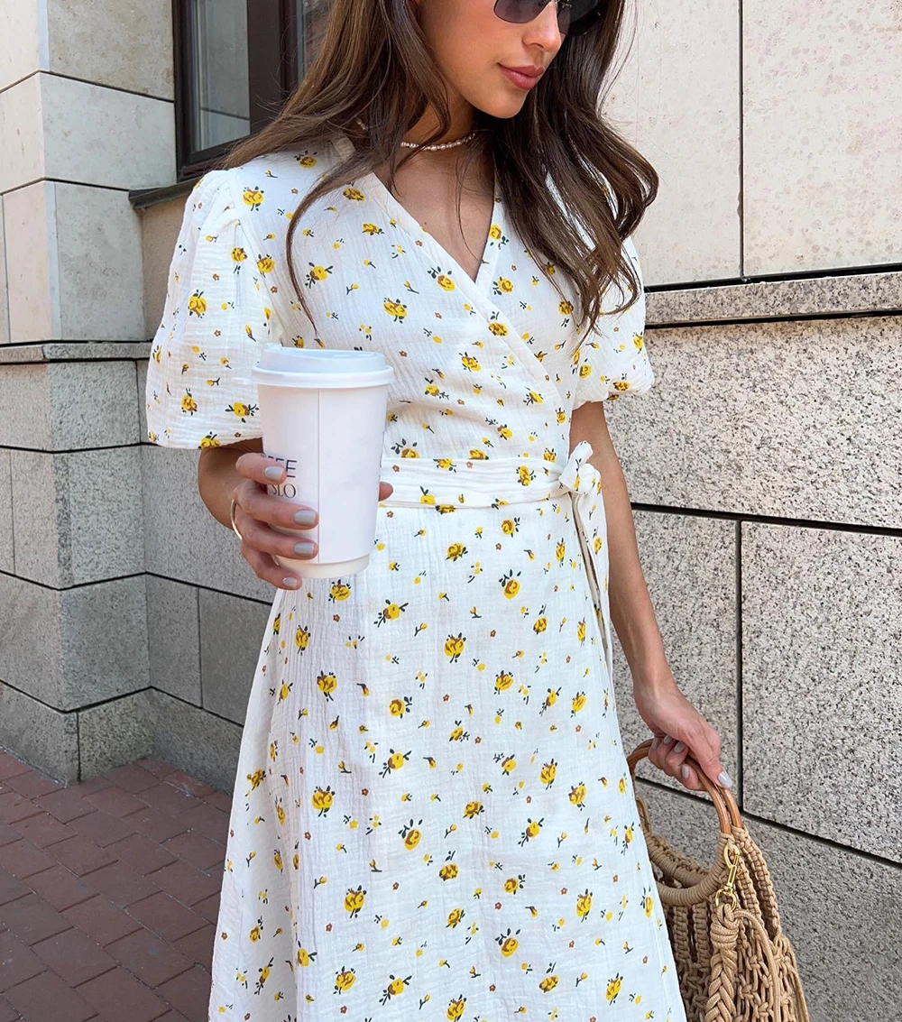 Dieses charmante Midi-Kleid aus 100 % Baumwolle kombiniert lässigen Komfort mit eleganter Note. Der florale Print und die seitlichen Schlitze sorgen für eine frische Sommeroptik und Bewegungsfreiheit. Das lange, weiße Design strahlt Eleganz aus und ist ideal für sommerliche Anlässe, vom entspannten Stadtbummel bis hin zu besonderen Events. Ein vielseitiges Kleidungsstück, das in keiner Sommergarderobe fehlen sollte.