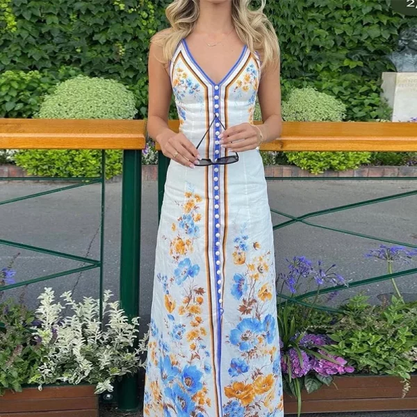 Sexy Bedrucktes Maxi-Kleid für Damen – Sommer, Rückenfrei, Ärmellos