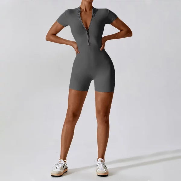 Stylisches Jumpsuit mit Reißverschluss, perfekt für Gym, Laufen und Yoga. Bequem und funktional für Ihr Sommer-Workout.