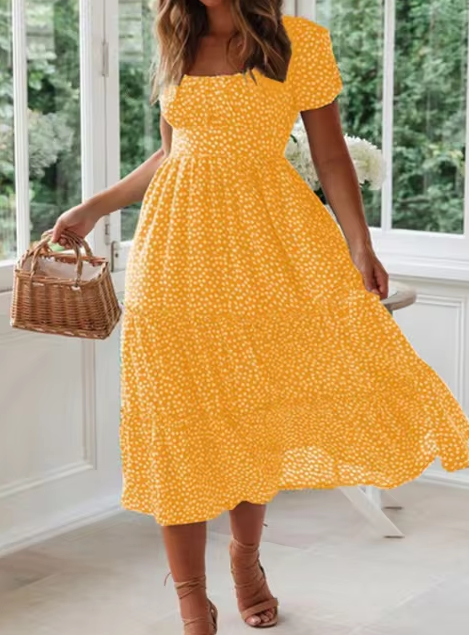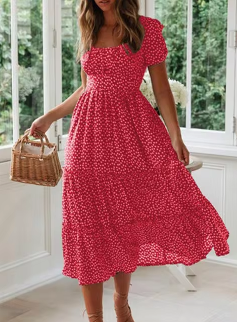 Dieses Vintage-Maxikleid mit floralem Muster bringt nostalgischen Charme in Ihre Sommergarderobe. Mit Puffärmeln und einem eleganten Karree-Ausschnitt ist es perfekt für entspannte Tage am Strand oder sommerliche Feste. Der fließende Schnitt sorgt für ein luftiges Tragegefühl, während das Design zeitlose Romantik ausstrahlt. Ein Must-Have für jeden, der auf der Suche nach einem stilvollen und bequemen Sommerkleid ist.